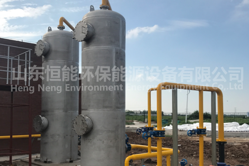 沼氣中含有大量的粉塵、污泥、水分、雜質(zhì)及毒害性氣體(如HCl,H2S,NH3),為達(dá)到設(shè)備利用要求或環(huán)保排放標(biāo)準(zhǔn),需要對原料氣中的氣體進(jìn)行預(yù)處理,如增壓、脫硫、脫水、除塵等。
